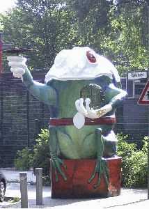 Farbenfroh begrüßen die Frösche alle Besucher der Rütlistraße. An der Ecke Rütli-/Weserstraße standen die beiden bislang etwas farblos herum. Doch jetzt fangen sie an in schillernden Farben zu strahlen. Das bisherige Zwischenergebnis kann sich sehen lassen - und alle dürfen gespannt sein, wie die beiden wohl vollständig in Farbe gehüllt aussehen werden.