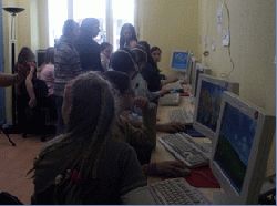 Die beiden Gymnasiastinnen wollen später studieren und nach der interessanten Arbeit mit dem Bildbearbeitungsprogramm Photoshop 7.0 und einer Einführung in das Layoutprogramm InDesign 2.0 könnten sie sich auch vorstellen in dieser Studienrichtung etwas zu machen. Später trafen dann die Mädchen der Franz-Schubert-Grundschule