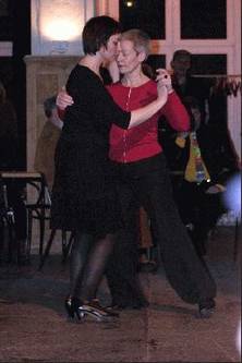 Gegen 19.00 Uhr gab es dann ein großes Abendbuffet, das keine Wünsche offen ließ: ob Vollwertkost, Fleisch, vegetarisch oder vegan – lauter Leckerbissen, die den Gaumen verwöhnten. Gut gestärkt ging es dann weiter mit einer Perle des Kiezes, die vorher wohl kaum einer kannte: der Tangoschule von Irmel Weber am Kottbusser Damm. Federleicht bewegte sich das Tangopaar zu argentinischen Klängen durch den Saal und ließ den schwierigen Tanz wie einen Spaziergang aussehen.
