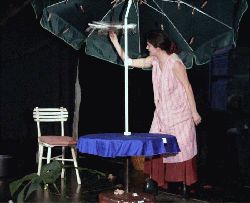 Große, leuchtende Kinderaugen richteten sich auf die Bühne, wo Birgit Hägele vom Theater ohne Namen in einer One-Woman-Show das Märchen von "Däume-linchen" erzählte. Mit Sonnenschirm, Wäsche-klammern, Socken und anderen Alltagsgegen-ständen zauberte sie Maikäfer, Seerosen und Laubblätter und begeisterte so nicht nur die kleinen Menschen, die zahlreich erschienen waren. Auch viele Erwachsene amüsierten sich in der ersten Stunde des Bürgerfests. Dazu gab es Kaffee und Kuchen und gute Gespräche mit den Tischnachbarn.